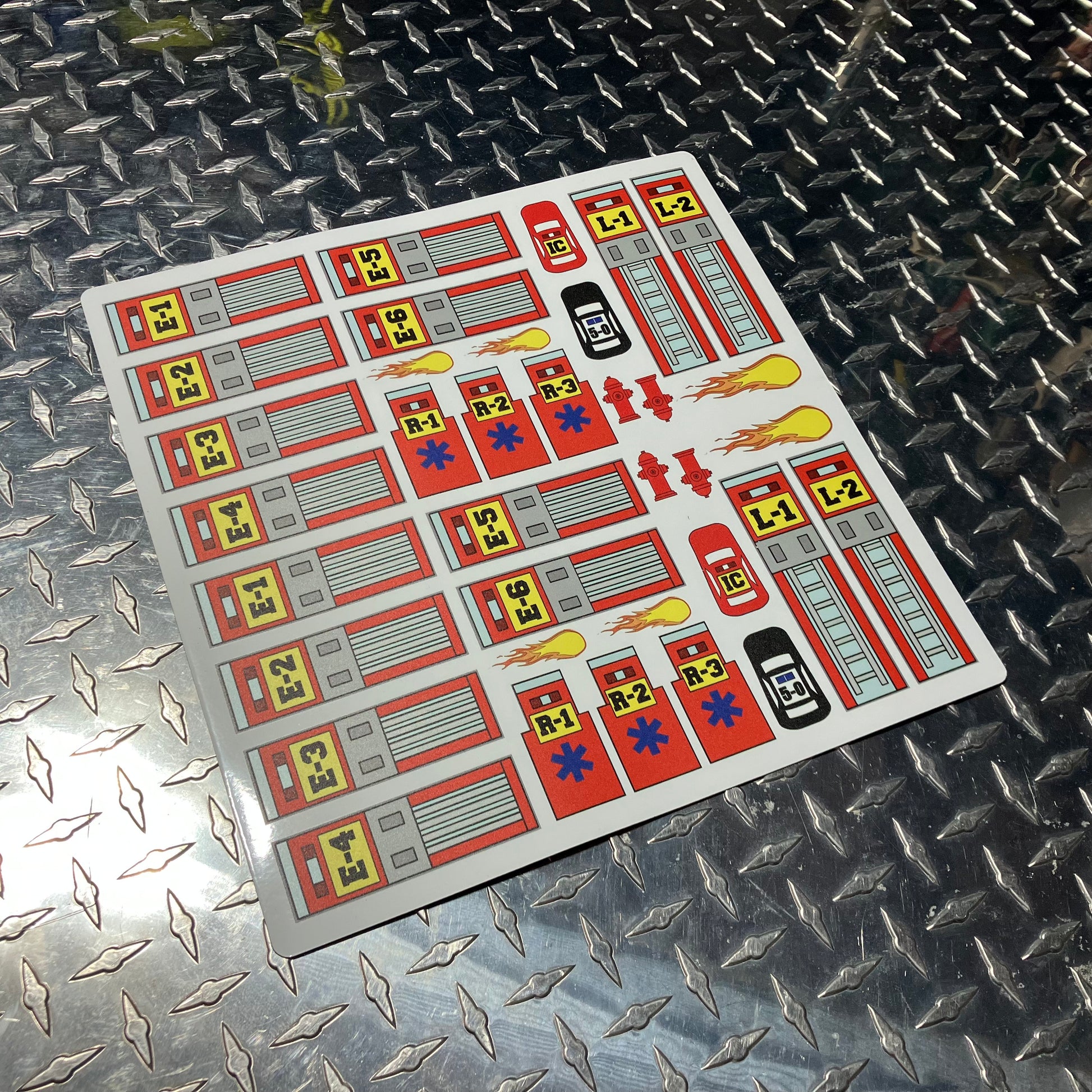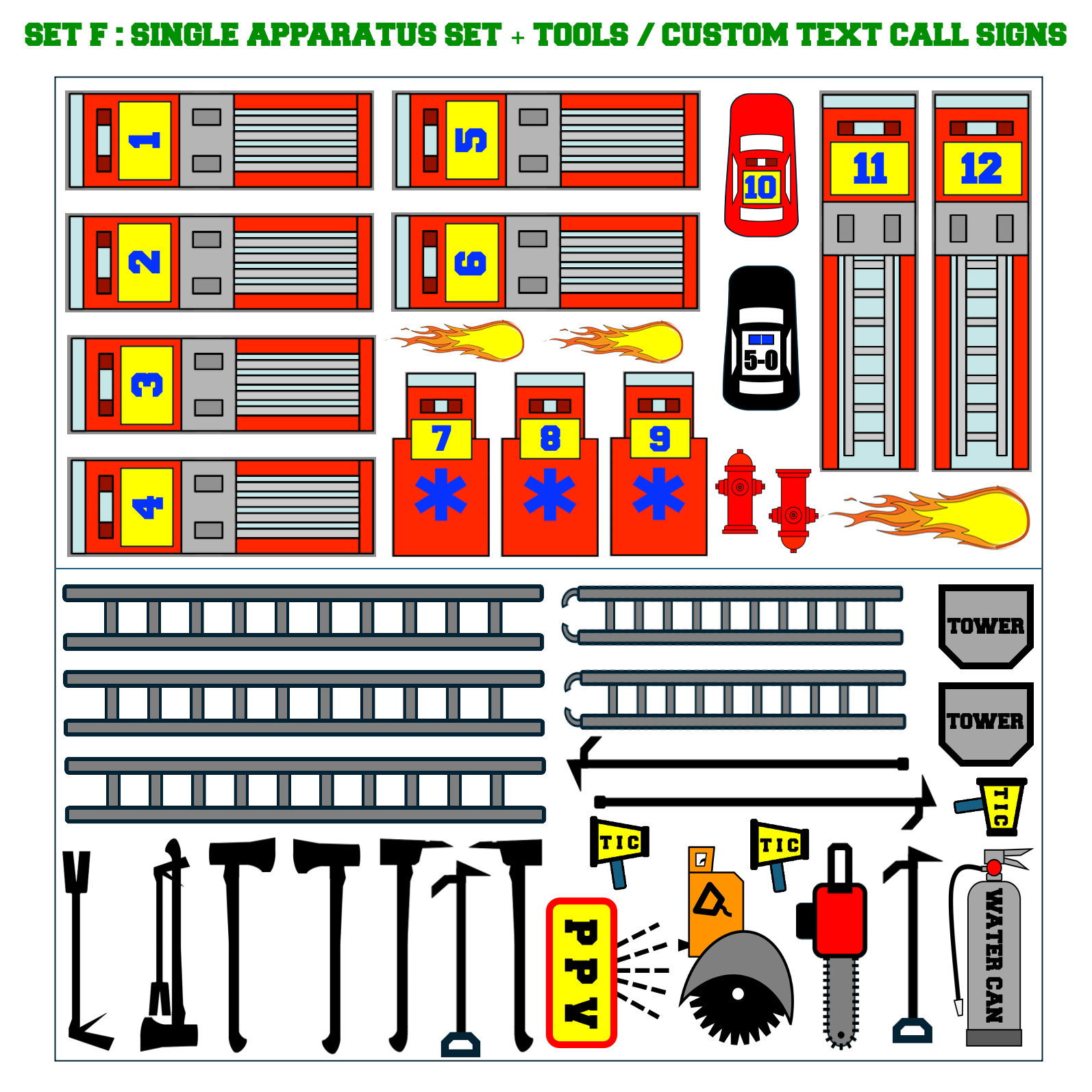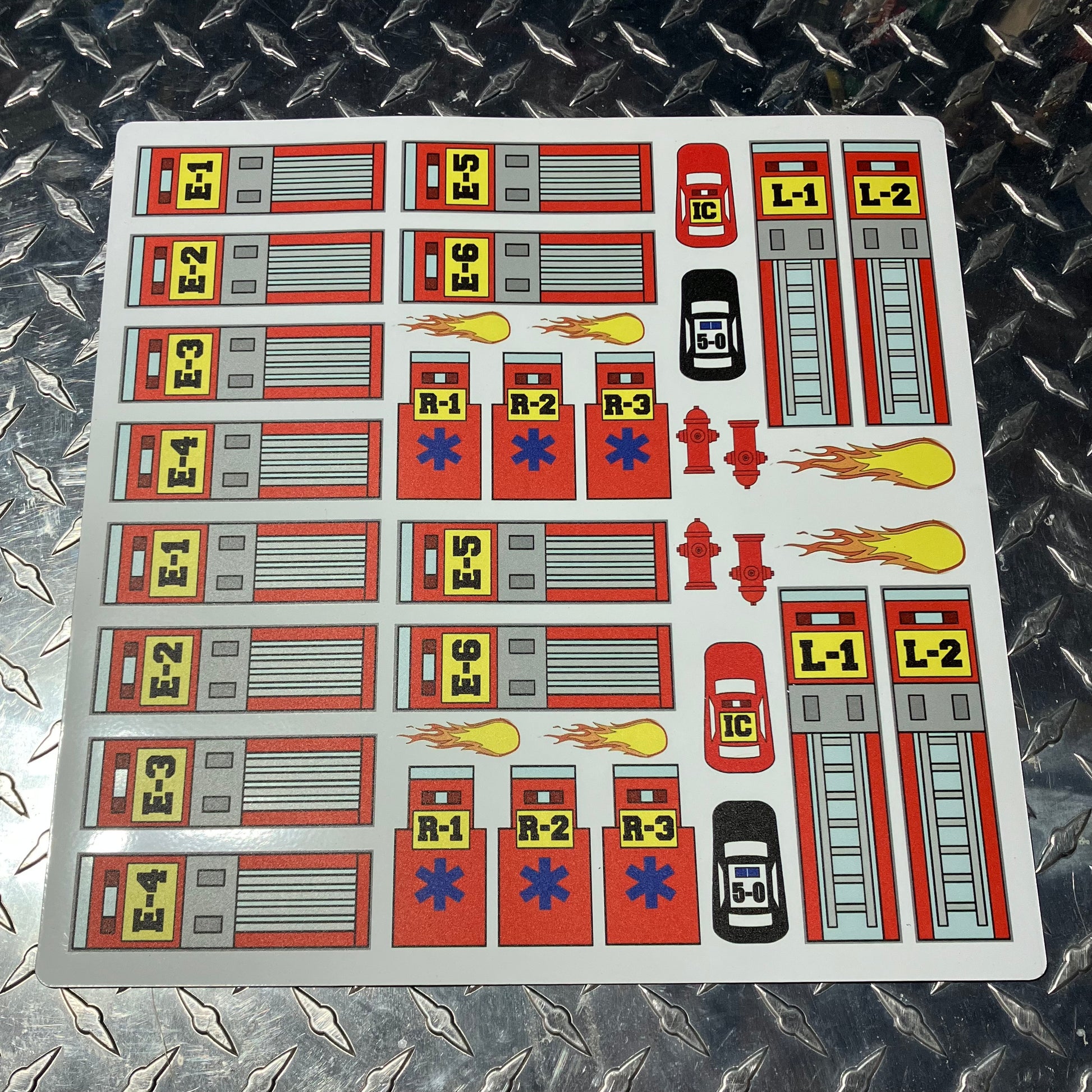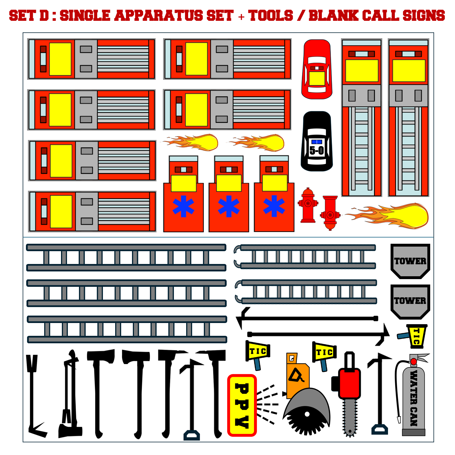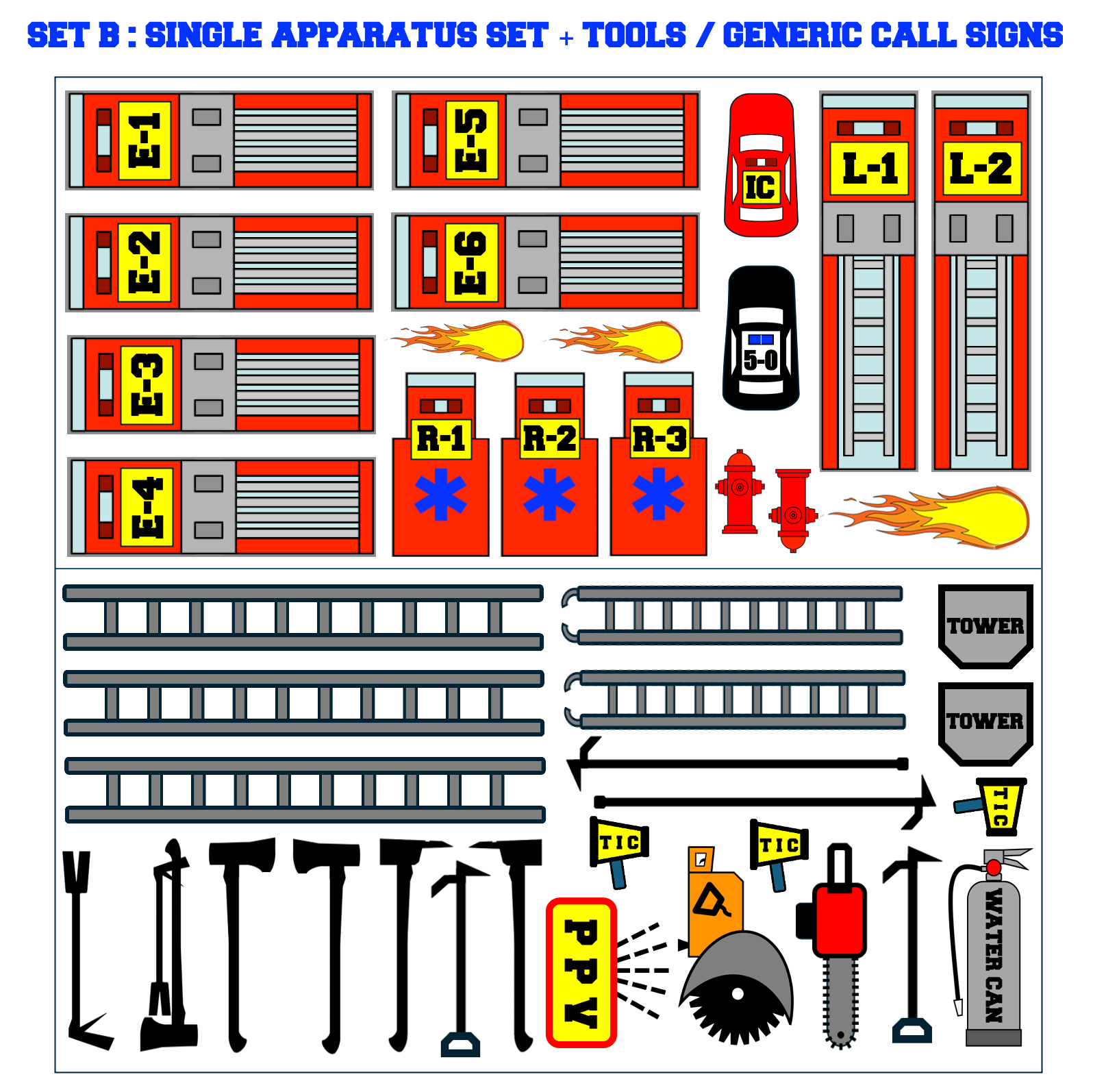 It's hard to do that with just a static sketch on the white board, so I designed these simple magnets that are easily added & moved around a magnetic white board. It lets me sketch a simple house or commercial building, & show how the first-due, second-due, ladder company, etc. arrive & go to work.