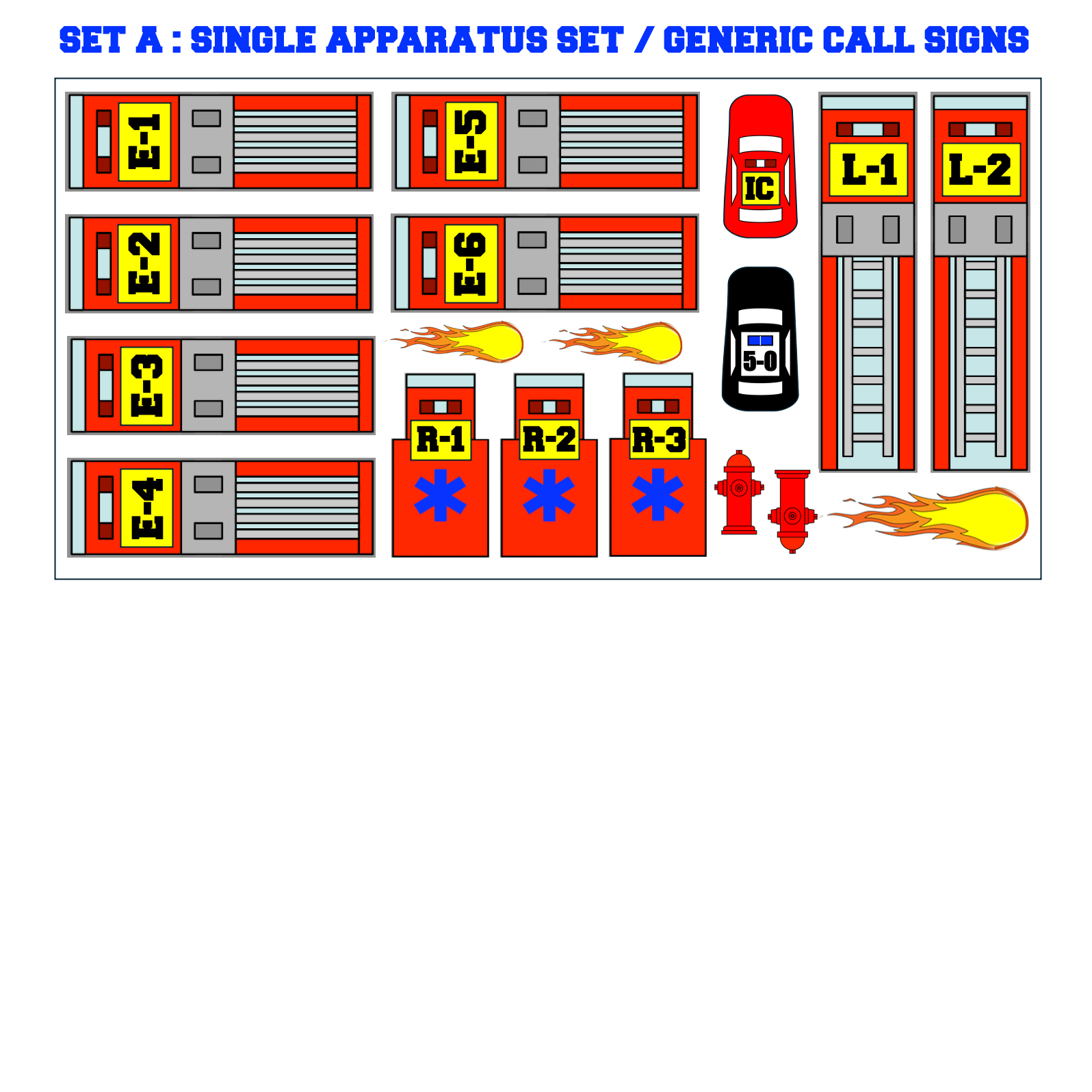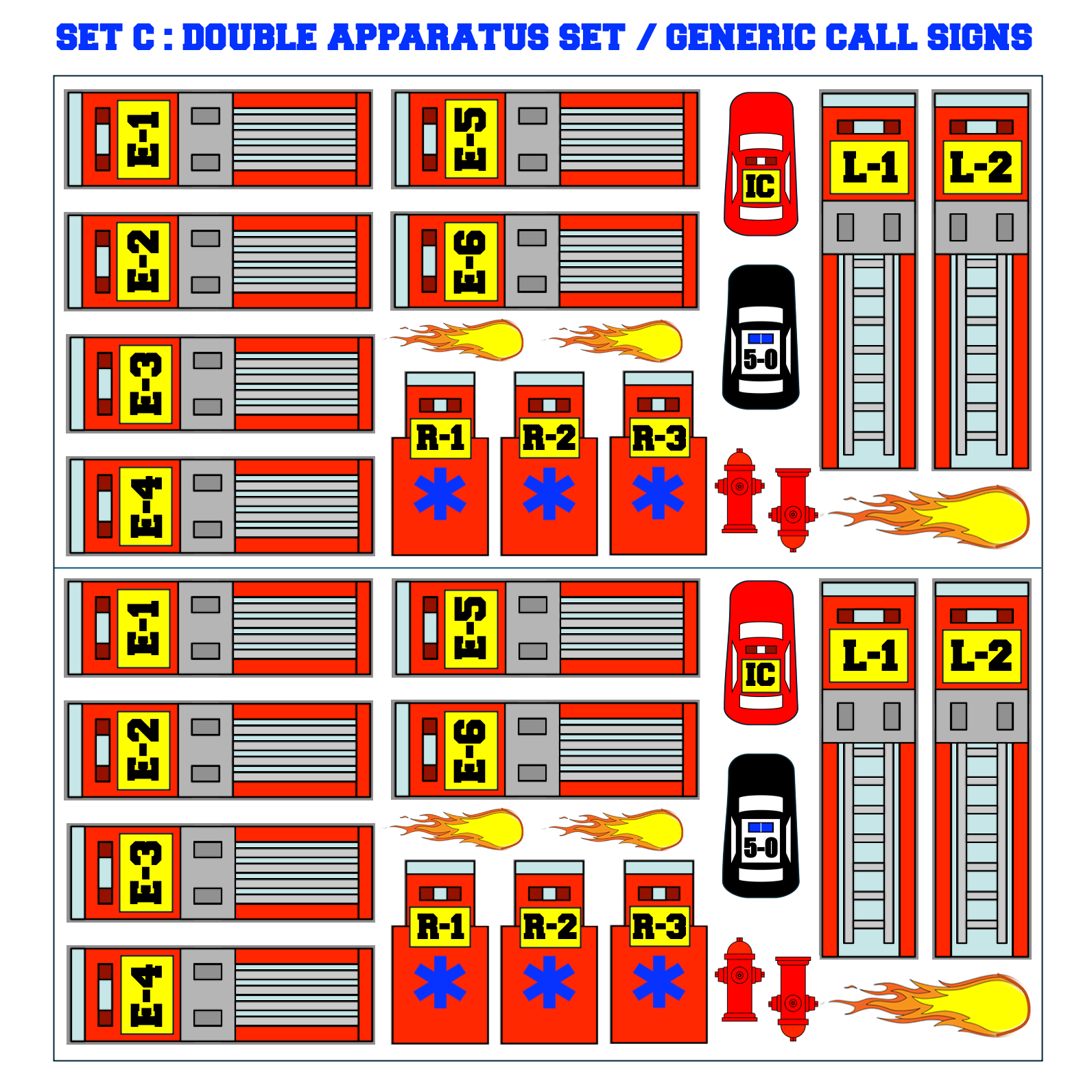 GENERIC CALL-SIGN sets are marked with generic apparatus markings (E-1, E-2, E-3, R-1, L-1, etc.)