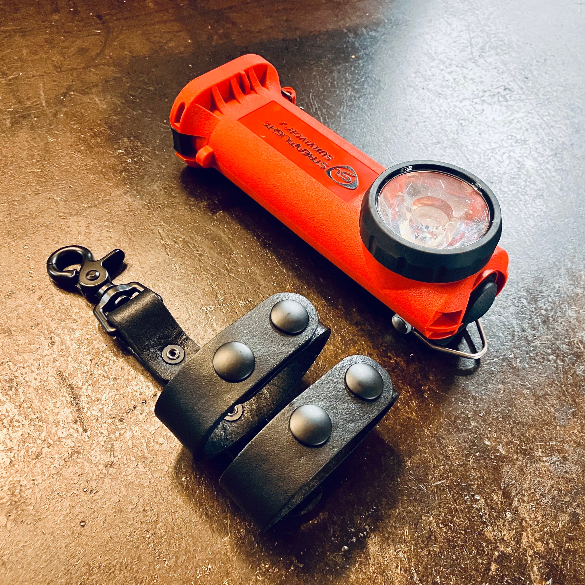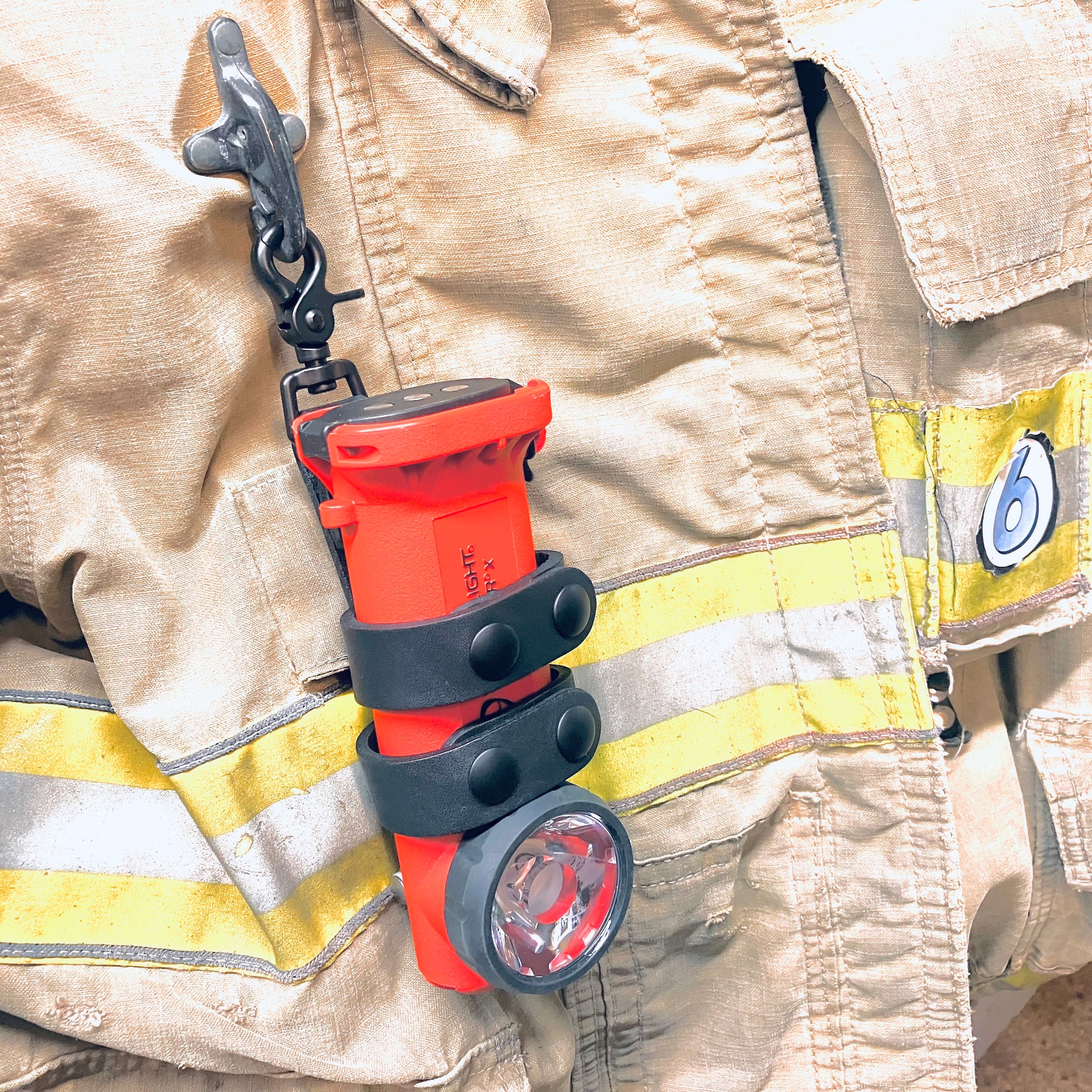 Welcome to the UPSIDE-DOWN! For the guys that like to hang loose & hang down, this inverted angle-light holder moves with you -not against you - for line advancement & search & rescue.