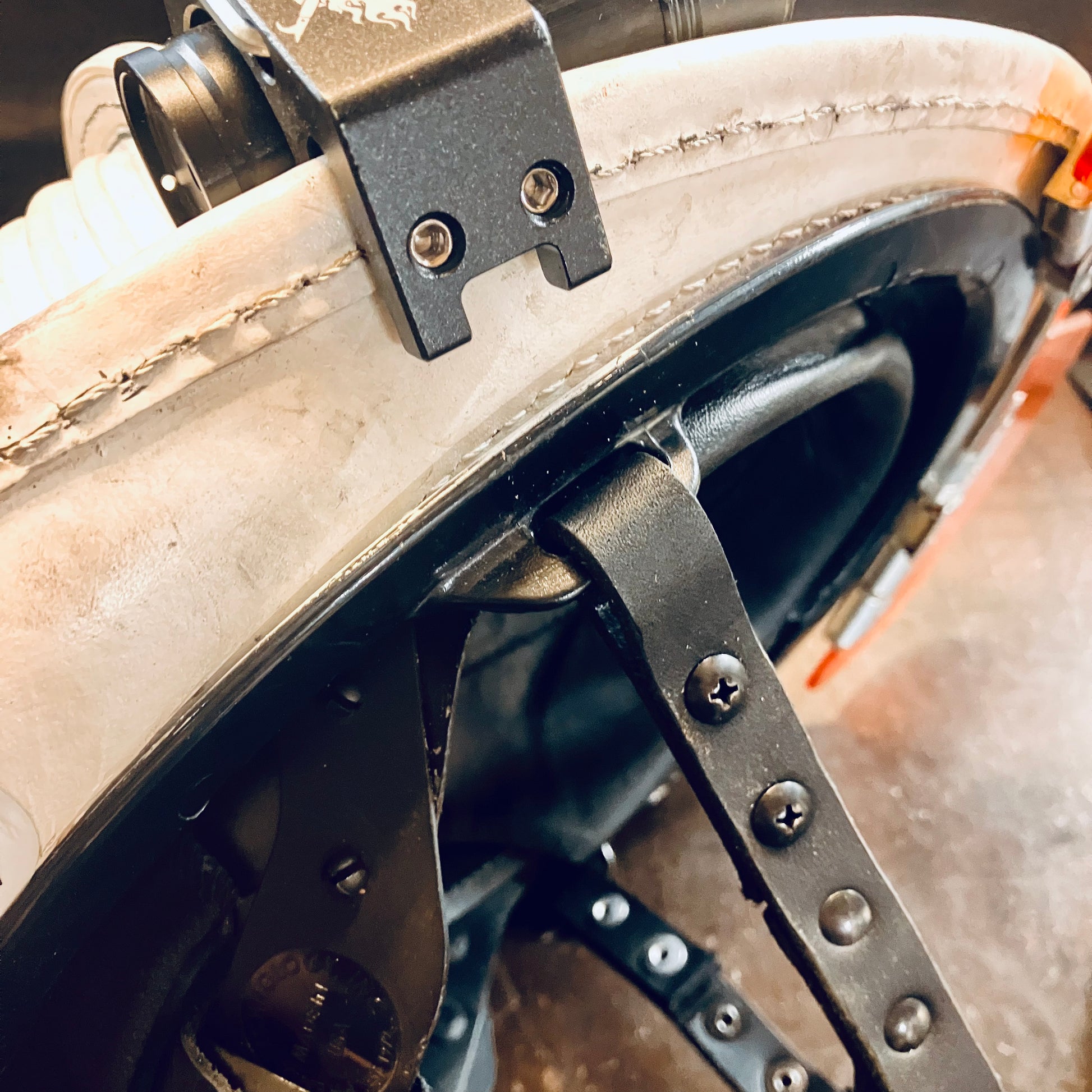 From BOSTON LEATHER! Full grain black leather. Easily attached to most popular helmet styles with just a phillips-head screwdriver. One size fits all.