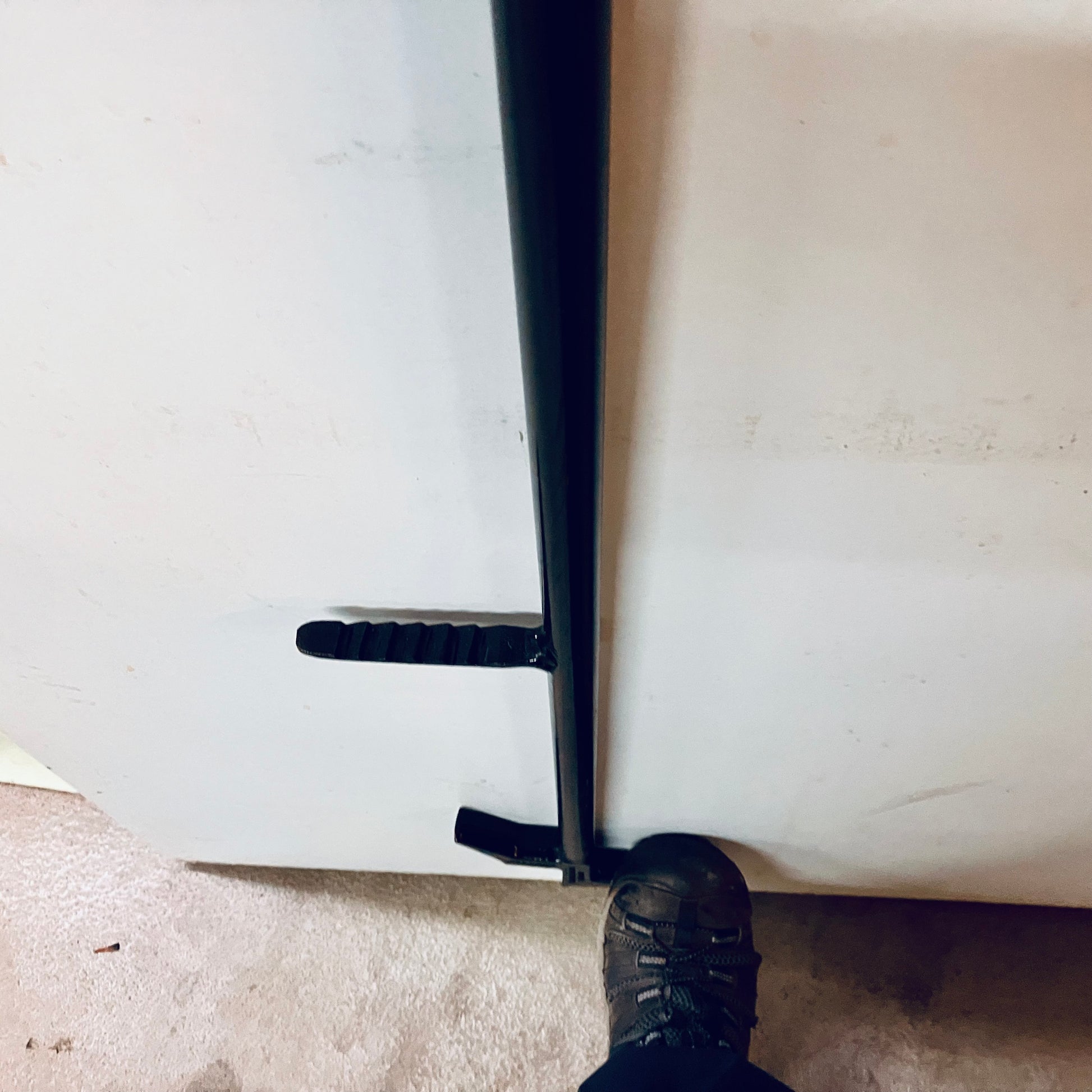 The idea is, for house fires where you're not sure if the fire has extended into the attic, you pull some ceiling to expose the joists in the attic, then you hook the joist with the fangs of the modified Trash Hook head, & use the rungs to climb up to see what you can see in the attic space....possibly even throwing some water into the space from your perch on the hook.